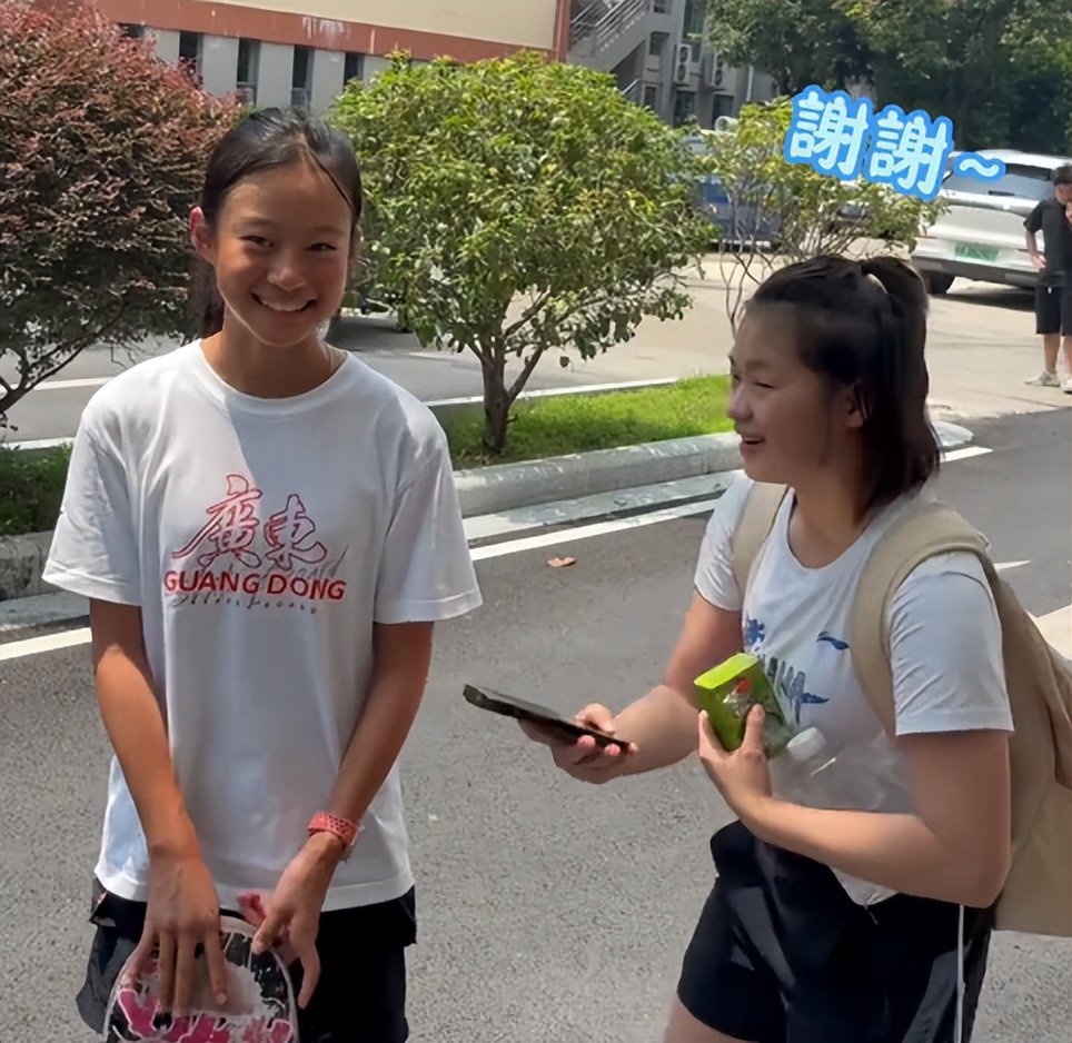 好好转头看着全妹离开的背影,心里大概在想终于和全红婵姐姐拍照了,毕竟好好也拿全妹当偶像。